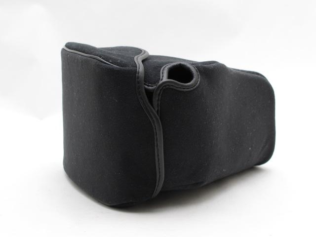 カメラ本体にレンズを装着した状態で収納できるカメラケースです。