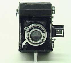 ミノルタ セミミノルタII・8型 ●発売年:1942〜43年頃(昭和17〜18年) ●型式:4.5×6判スプリングカメラ ●使用フィルム:120、220フィルム ●レンズ:コロナ-ニッポン75mm/f3.5 ●シャッター:クラウンT・B・1/5〜1/200秒セットレバー付き ●ファインダー:逆ガリレイ、自動起立 ●焦点調節方法:前玉回転