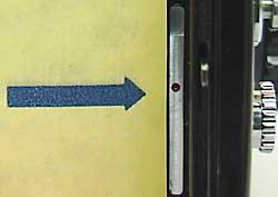 Wind up the film until the start mark on the leading paper comes right against to the start mark on the camera body.