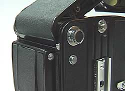 Put back the rear cover onto the camera body. With pulling up the stopper, slide the hinge shaft into the position.