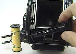 When you use up the film, wind the film up to the end with the film wind crank.