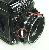 When detaching the lens, first, extend out the lens with the focusing ring, and then with depressing the lens releasing lever, coincide the red dot on the lens with the red dot on the focusing ring.