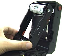 表示が現れます。ラミネートスライドロックレバーを押し上げ、フイルムを取り出します。