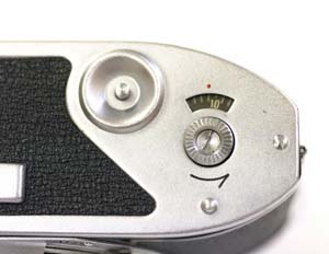 ボディ底部のフィルム巻き戻しボタンを押し込んだら、 巻き戻しノブを引き上げてフィルムを巻き戻します。