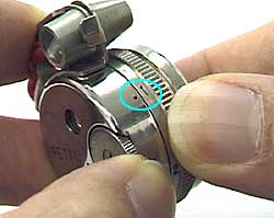マガジンがセットできたら、コマ送りリングを順送りに回し、1回転以上回してから再びボディの赤丸とリングの「1」が合うようにストップさせます。これで初めてレンズの位置とマガジンの丸い穴(画面枠)があった状態になります。