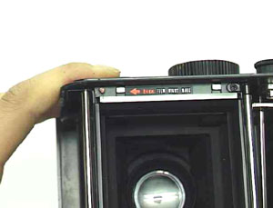 スタートマークは120(上段左)と220(上段右)の2つのマークがあり、それぞれの矢印に合わせて フィルムを巻き上げます。