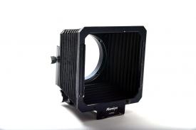ラックピニヨンと蛇腹によって55〜300mmまでのレンズに使用でき、ゼラチンフィルターが挿入できるスリットもあります。